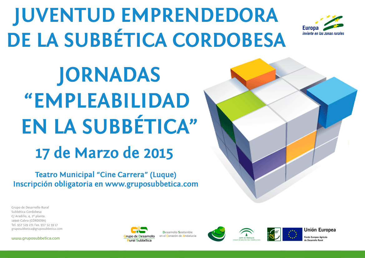 El Grupo para el Desarrollo Rural de la Subbética Cordobesa organiza el próximo día 17 en la localidad cordobesa de Luque las jornadas “Empleabilidad en la Subbética”, con las que se pretende ofrecer a los jóvenes de la zona una visión general de la situación del empleo en la comarca y en Andalucía, tanto en lo que se refiere a sectores tradicionales como el agroalimentario como a nuevos yacimientos de empleo, así como detectar sus inquietudes en relación con cuestiones como el acceso al trabajo o la formación.